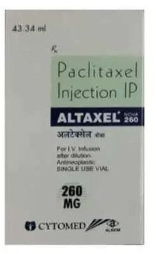 Altaxel Injection contains Paclitaxel, a chemotherapy medicine in the taxane class. It is used to treat breast cancer, ovarian cancer, non-small cell lung cancer (NSCLC), and AIDS-related Kaposi’s sarcoma. Paclitaxel inhibits microtubule function during cell division, thereby stopping cancer cell growth and spread.